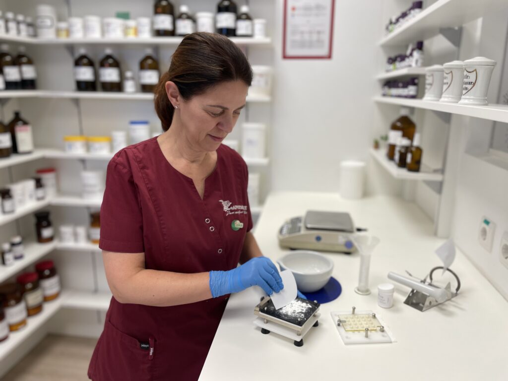 Zu den ureigensten Aufgaben der ApothekerInnen gehören seit jeher das Mischen von Salben und Ölen, die Zubereitung von Tinkturen und Sirupen, das Abfüllen von Pulvern und Teemischungen bis hin zur Herstellung von Kapseln und Zäpfchen.