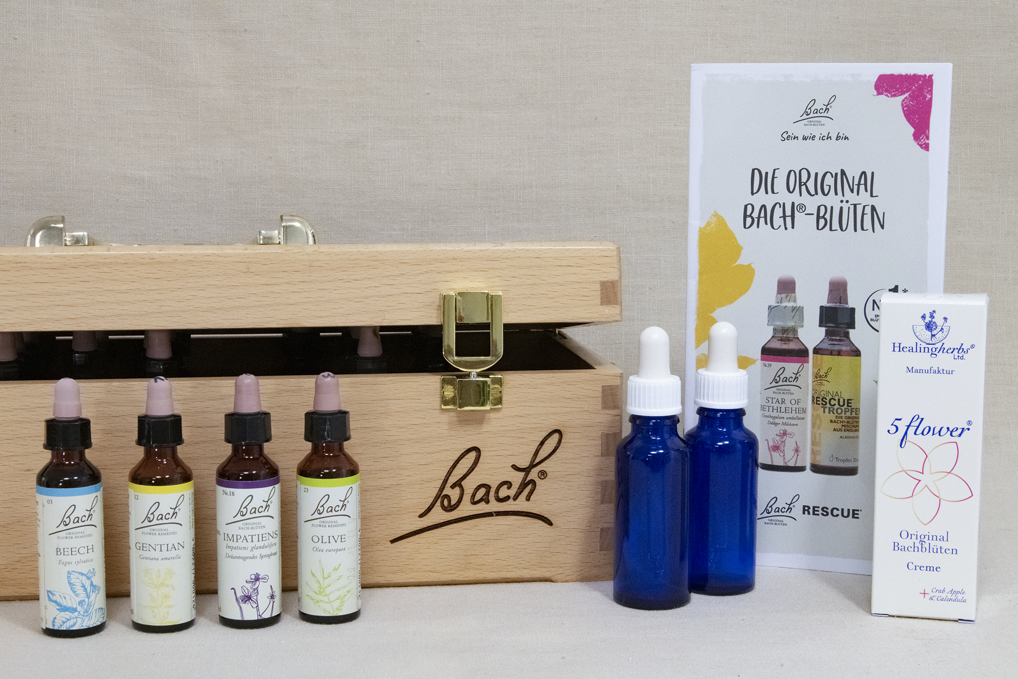 Wir haben alle 38 Original Bach-Blütenkonzentrate für die Zusammenstellung individueller Mischungen auf Lager, selbstverständlich bieten wir auch die bewährten Notfall-Kombinationspräparate wie Tropfen, Cremen oder Pastillen an.