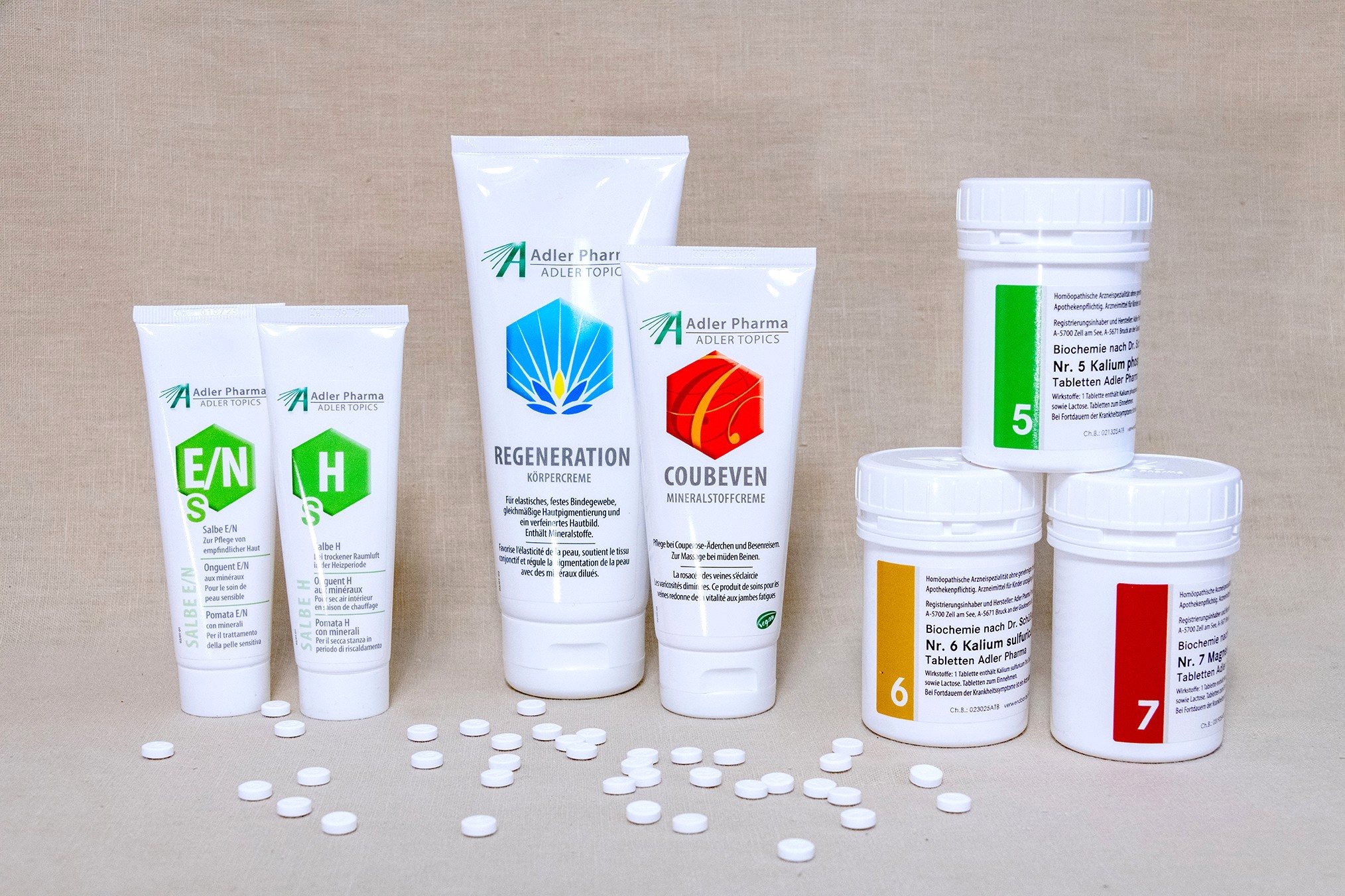 Wir führen ein breites Sortiment an Mineralstoffen nach Dr. Schüßler, sowohl klassische Tabletten als auch Salben, Körperpflegeprodukte, Bäder, Pulver zum Einnehmen und spezielle Produkte zur Babypflege.